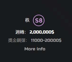 当我们达到S8级时，我们将获得高达20000U的奖励。